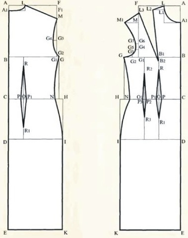 Для улучшения посадки платья на фигуре рекомендуем строить вторую вытачку на полочке.